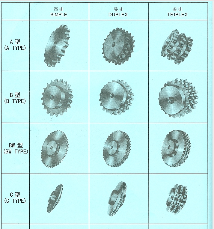 Hiện nay nhông xích tiêu chuẩn chủ yếu được chia thành 3 loại:
